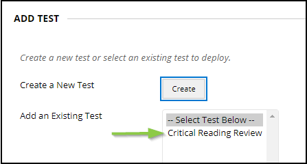 • This will attach the test to a specific content area or folder and deploy it for students to access.