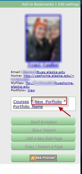 Your new portfolio will now be displayed next to your Courses link in the column to the right of your Portfolios Page.