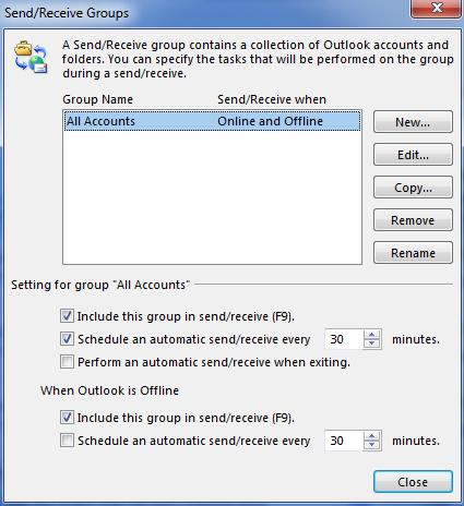 Automatically Send/Receive every 5 minutes (Send/Receive tab > Send/Receive Groups > Define Send/Receive Groups > Perform an automatic send/receive every 5 minutes)