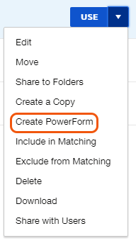 - Click the "Use" button to the right of the Template and select "Create PowerForm"