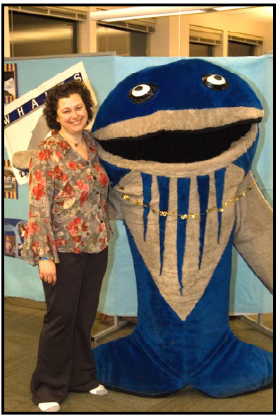 Whalesong archives show that Spike starting appearing on campus in September of 1987. At the time Spike was very popular at basketball games. Today Spike can often be spotted at events both on and off campus. Spike lives at the Recreation Center and is out for display, greeting those who enter the facility.